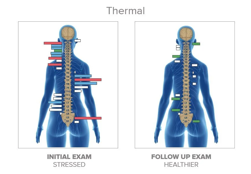 Assesses regulation and inflammation by measuring temperature differences along the spine. This scan shows how well your nervous system is coordinating organ function, digestion, and internal balance.