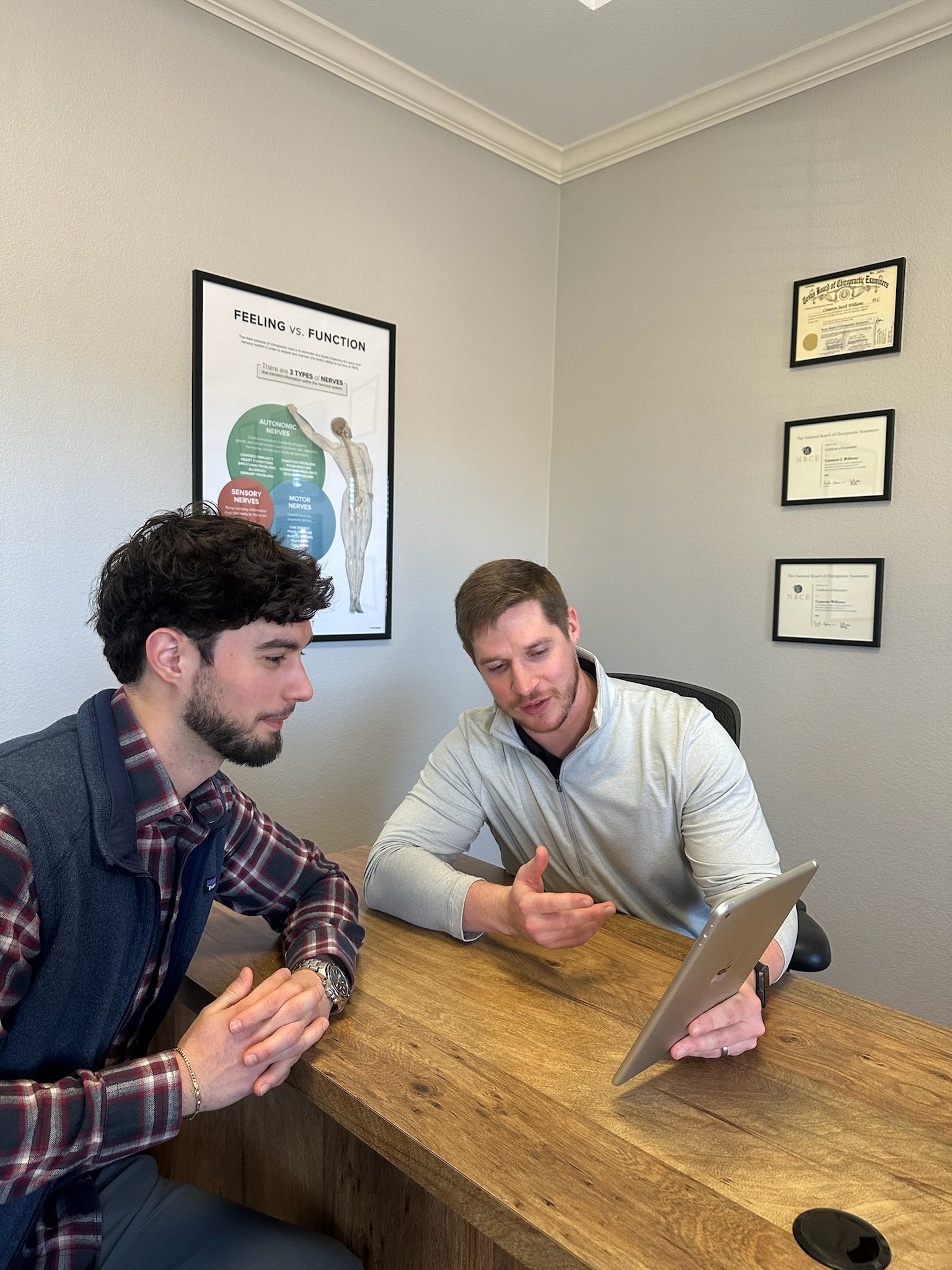 Next, we conduct a comprehensive chiropractic exam, which includes palpation to assess areas of tension or misalignment, along with neurological and postural assessments to evaluate how your body is functioning as a whole.